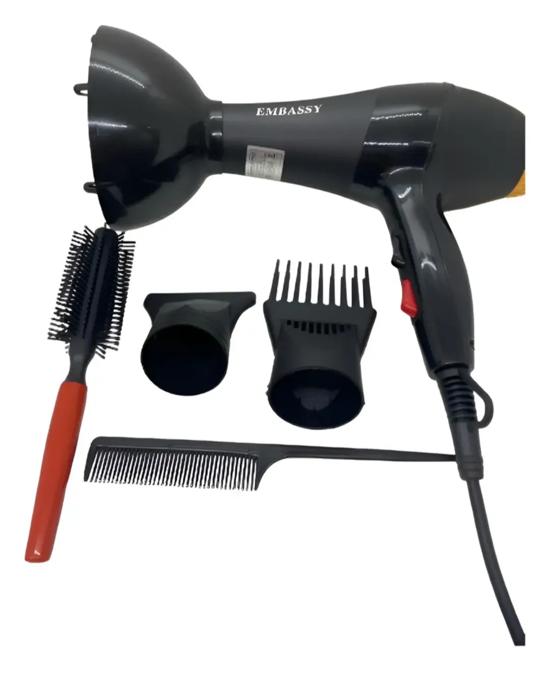 Con el Secador de Pelo Profesional Embassy 1600W, obtené resultados de calidad profesional en minutos. Diseñado tanto para uso en salones como para el cuidado diario en casa, combina potencia, control y accesorios completos para que puedas crear el look que quieras con facilidad.